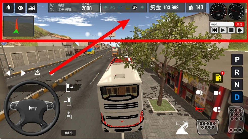 2.屏幕上方显示任务路线、预计收入和资金情况,帮助玩家实时掌握驾驶目标,确保任务顺利完成。
