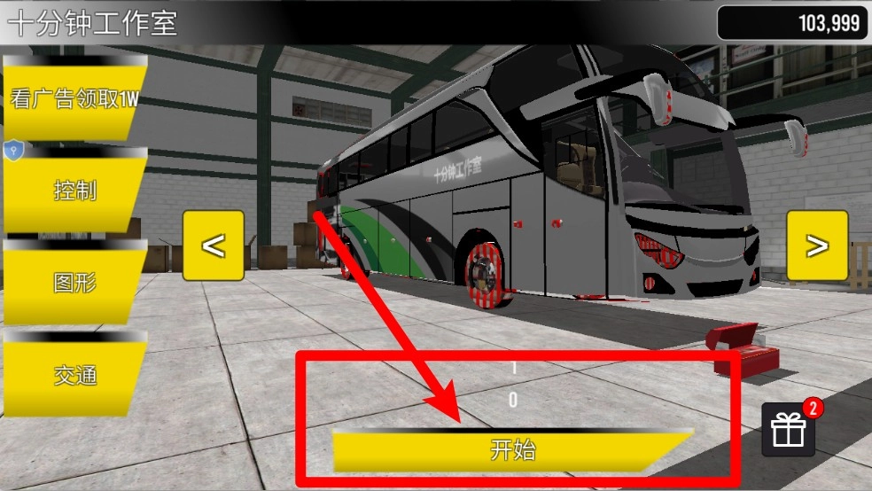 1.车库界面提供车辆管理与个性化设置,玩家可以调整外观和控制方式,点击开始即可进入新的驾驶挑战旅程。
