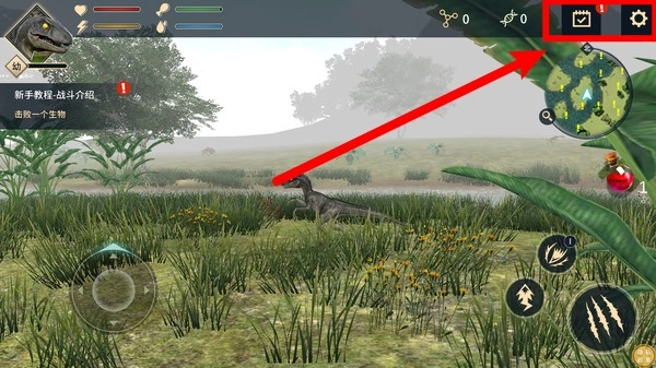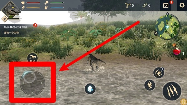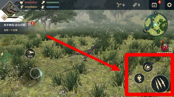 1.移动操控:左下虚拟摇杆控制恐龙行走与转向,按住可持续移动,配合右上小地图辨位,探索水源与猎物更高效。
