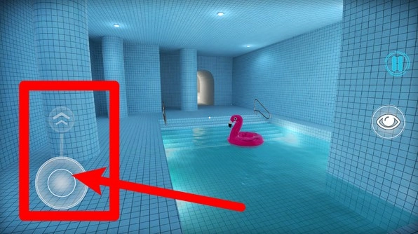 3.界面左下角的圆形虚拟摇杆是角色移动控制,通过拖动摇杆即可在场景中自由探索并寻找隐藏的出口与线索。
