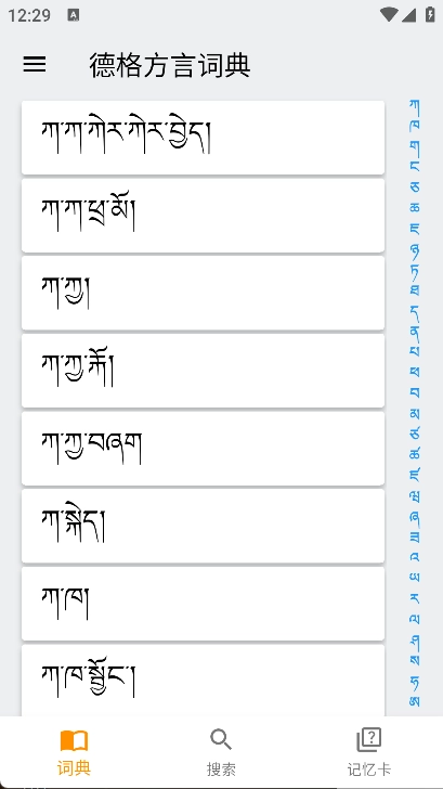 《德格方言词典》是一款聚焦德格地区方言词汇查询与学习的实用工具,致力于协助用户快速熟悉和掌握德格方言。它整合了藏语、汉语与英语三种语言,提供丰富的藏语学习资源及翻译功能。这款应用通过对海量方言资料的收集、梳理与分析,为用户带来精准且全面的方言词汇查询服务。无论是方言爱好者、语言学习者,还是文化探索者,都能借助它更系统地学习藏语知识,提升学习成效。
