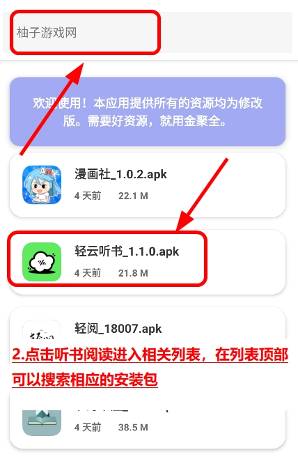2.随后,轻轻点击“听书阅读”选项,进入相应的资源列表页面,于列表顶端的搜索框内输入关键词,即可迅速找到目标安装包。