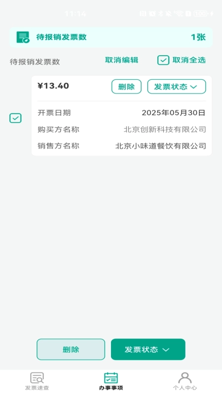 2、支持发票数据管理功能,便于用户快速查阅待报销发票,有效简化报销流程,减轻报销工作负担。