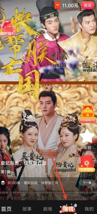 1、用户可以进入首页,在首页找到“赚钱”入口。