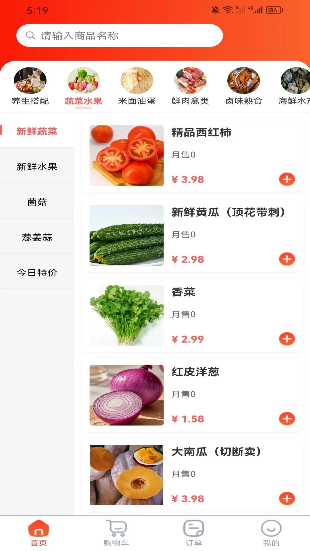 首页设有多种商品分类,用户可根据自身需求挑选对应商品并完成下单购买。