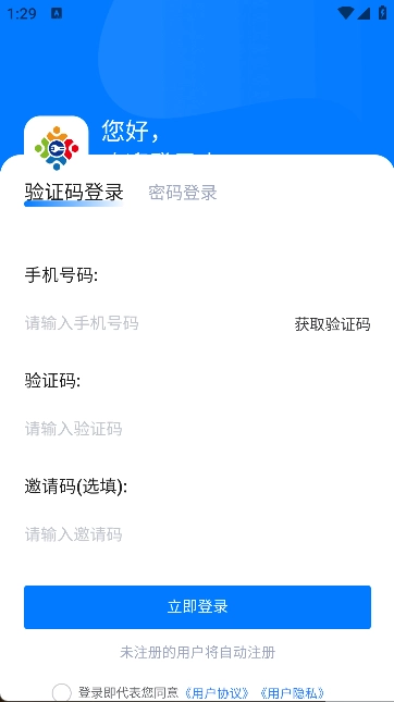 2. 输入手机号和验证码,即可快速登录,开始使用。