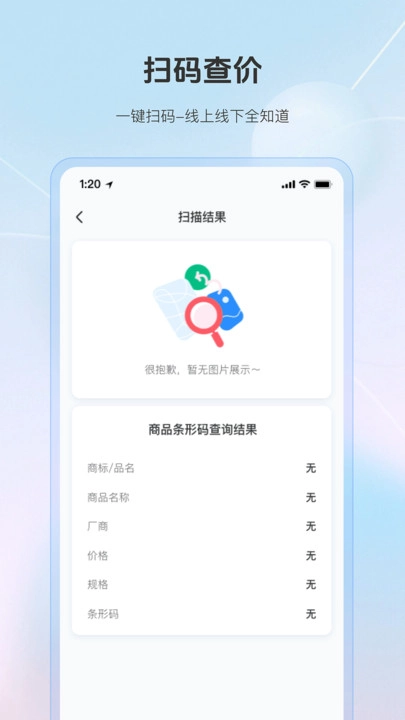 2、扫描商品条形码后,能够迅速获取该商品的详细信息,像商标、品名、生产厂商、价格以及规格等内容都能一目了然。