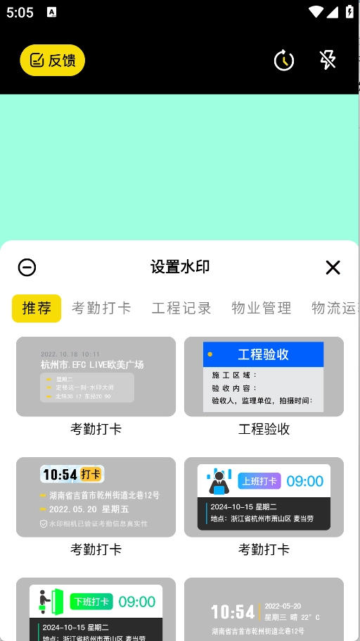2、配备多样水印模板,涵盖时间戳、地理位置、天气信息等内容,用户能够自主挑选使用。