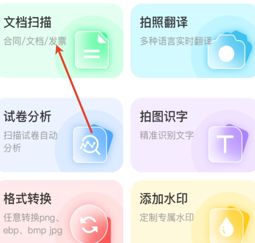 1、用户可进入首页,在首页中找到所需的扫描类型。