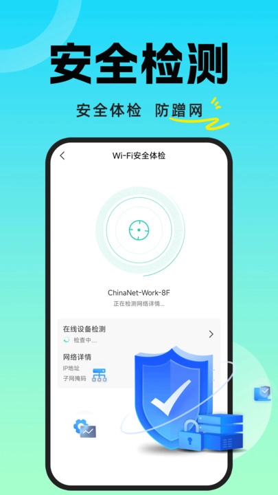 万能钥连作为专业的网络优化工具,整合了WiFi测速、网速检测与安全防护功能,旨在为用户打造更快速、稳定且安全的上网环境。它可以迅速检测当前网络的信号强度、连接质量以及网络延迟等重要指标。