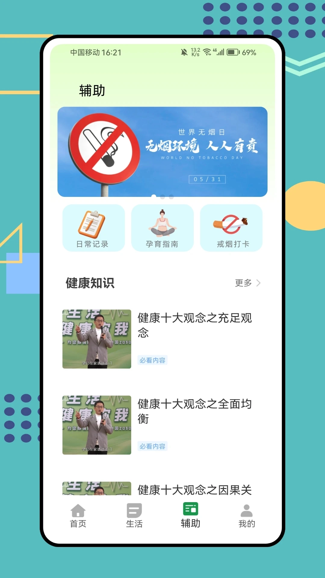 3、上线多样健康课程与讲堂,助力用户提升健康认知。App用药助手工具,可辅助用户规划用药方案,并及时提醒按时用药。