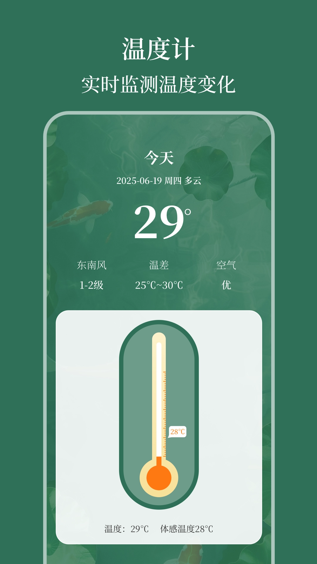 室内温度计AI测温度是一款主打多功能生活辅助的手机应用,依托AI技术,可实现环境监测、海洋信息查询、生物识别等服务,能满足用户在生活及认知层面的多元需求,借助实用功能让生活更便捷、更有趣。
