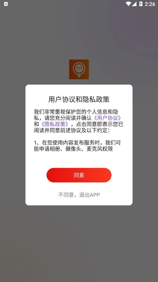1、安装软件后打开,点击同意用户协议和隐私政策。