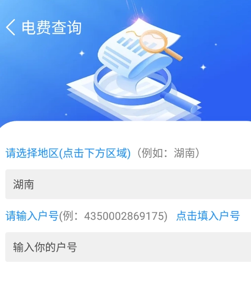 2、任你输入选择你所在的地址,并且输入你的户号。