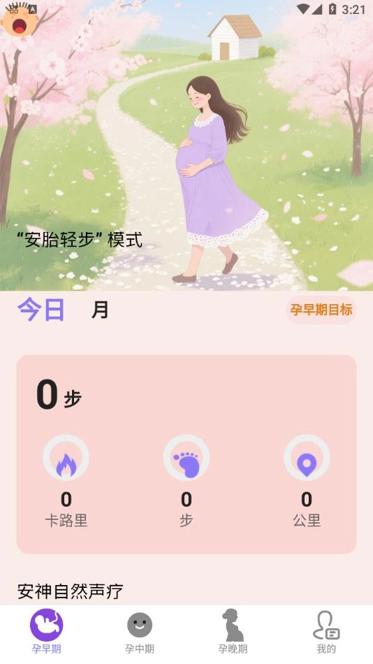 1、借助安胎轻步模式进行实时计步,记录孕妇每日的走路运动状况,助力其了解自身运动进度。
