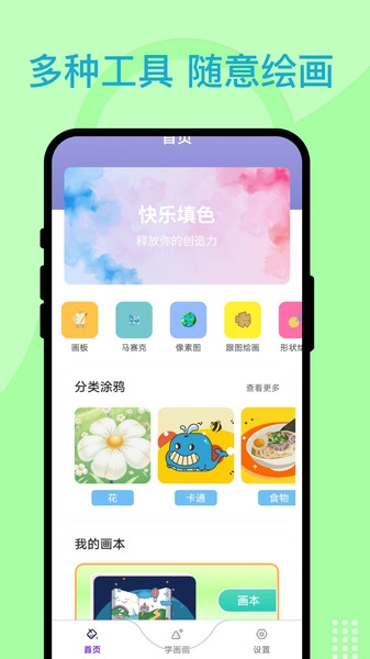 2、首页整合了各类绘画与编辑模式,是一款能实现一站式趣味绘画创作的工具。