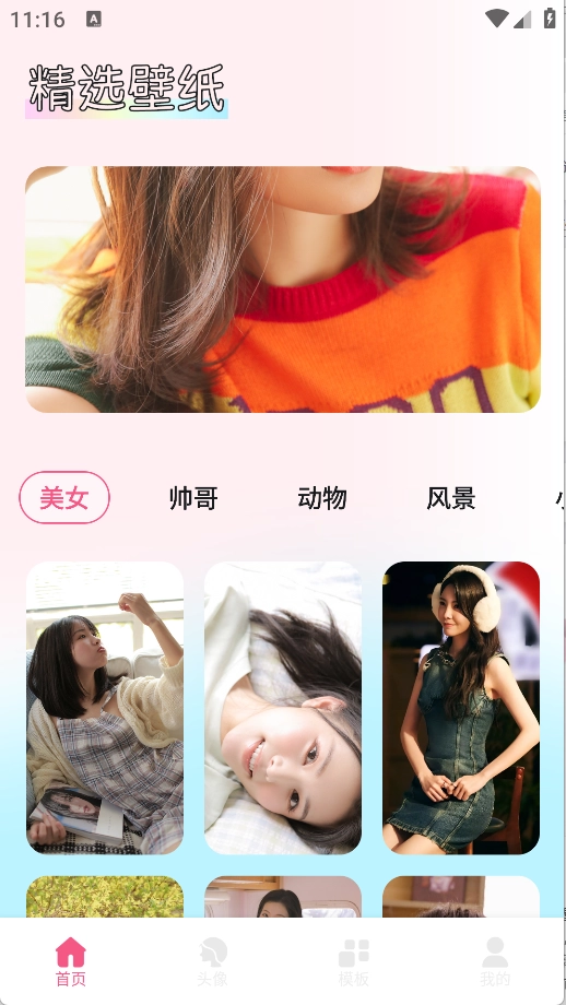 1、拥有海量精美壁纸,包含清新风景、时尚人物等多种风格,能够满足不同用户的需求。 2、设置了贴心的分类,用户可以一键筛选出帅哥美女、萌宠风景等类型的壁纸和头像。
