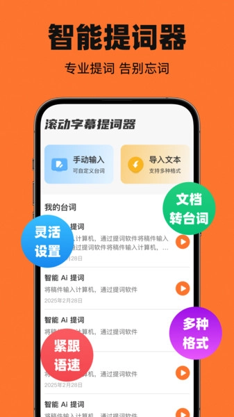 3、智能语音辅助:拥有语音识别能力,可把用户的语音输入实时转换成文字并呈现在提词器界面,便于用户在撰写演讲稿的过程中迅速记录灵感。