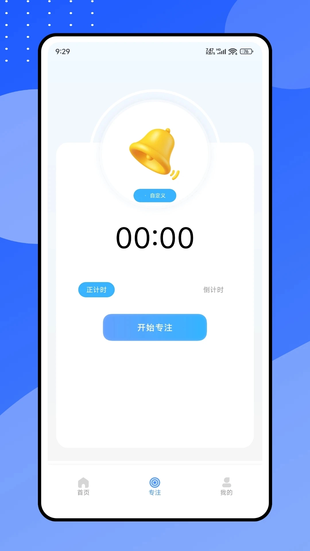 3、一键开启沉浸专注钟,即可屏蔽干扰,营造沉浸式学习环境。