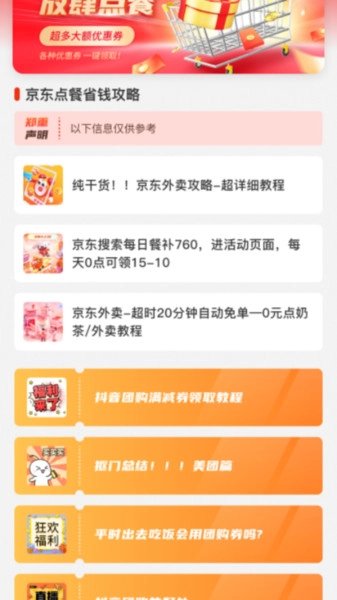 1、汇聚了众多外卖平台的海量优惠券,无论是常见的大型外卖平台,还是小众的本地外卖商家,都能找到对应的优惠券。