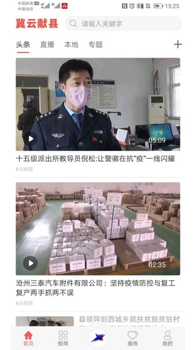 冀云献县是同城县掌上宣传和政务资讯推送的综合工具。软件集合了融媒体中心新闻,让居民能了解同城大小事,观看本地电台直播,县城报纸消息,同城各类行业新闻等等服务,掌握城市大小事。作为本县的居民,都可以使用这个软件,了解本地电台直播、报纸、电视播放的所有信息。想要在这里更好的生活,了解自己家乡的最新状况,都可以用冀云献县。