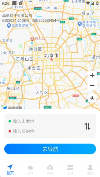 在首页输入出发地与目的地后,点击“去导航”按钮即可执行操作。