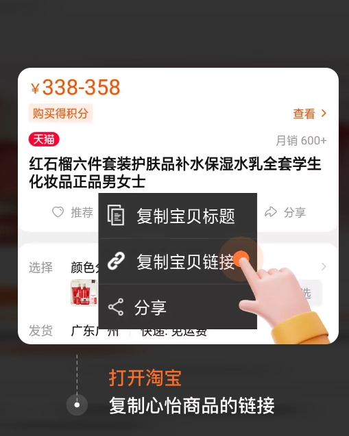 2、用户进入首页后,找到目标商品,复制该商品的链接并做好记录。