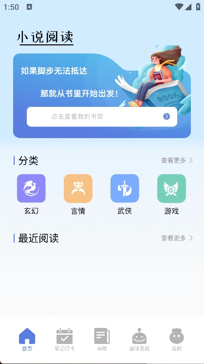 一起看阅读器是上海优信教育科技有限公司推出的多功能手机阅读应用,核心特色在于本地书籍导入与趣味学习的双模式设计。用户不仅能导入TXT、EPUB等30多种格式的本地小说、诗歌,还能借助趣味答题、笔记打卡等功能,达成沉浸式阅读体验与知识巩固的双重效果。此外,软件支持字体、字号及背景色(如羊皮纸质感、夜间模式等)的自定义调节,可灵活适配不同阅读场景。建议有相关需求的用户尝试使用。