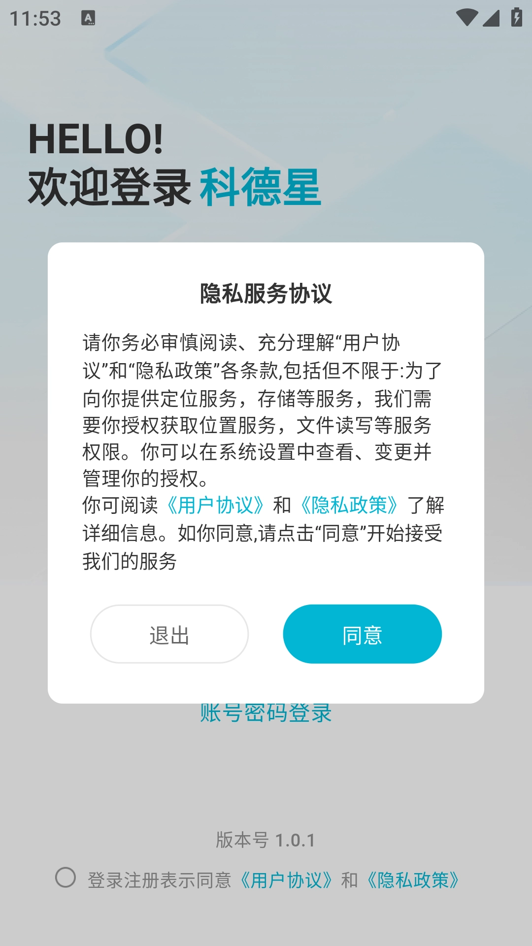 1、安装软件并打开,点击同意,进入软件登录界面;