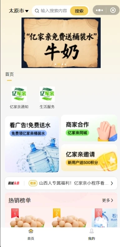 1、在首页可以看广告免费送水,还有商家合作以及热销榜单的信息;