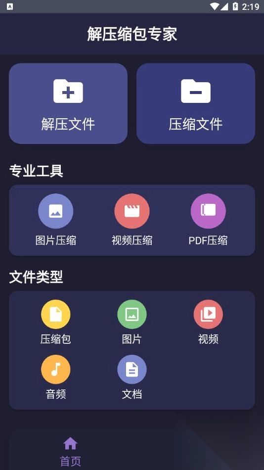 解压缩包专家是一款专注于文件压缩的手机应用,支持对压缩包、图片、视频、音频、文档等各类文件进行压缩与解压操作,还具备文件预览、历史记录查询以及本地文件管理等实用功能,能够助力用户高效处理文件,无论是日常文件整理还是提升文件传输效率等场景,都能轻松满足需求。
