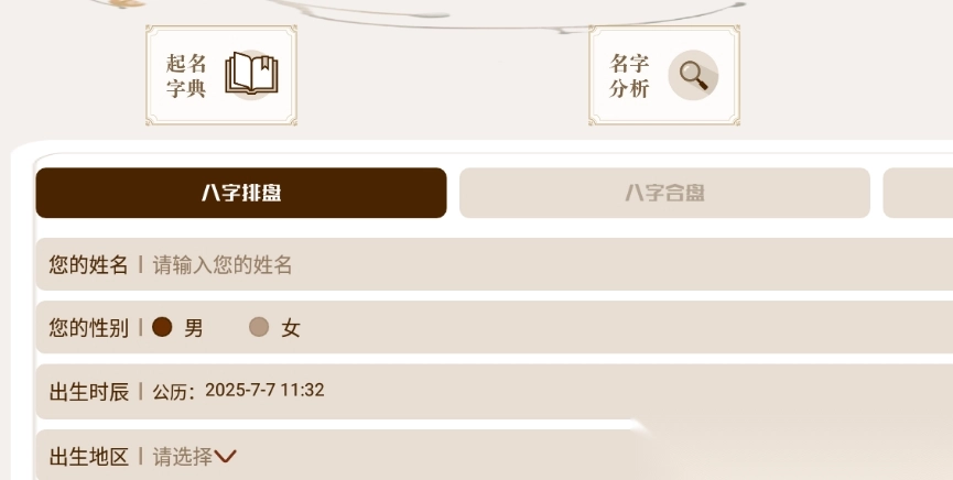 2、实时八字分析:依据用户所提供的出生时间,即时精准推算八字五行,剖析命主的五行强弱态势与旺衰程度,从而为起名环节提供精准的五行补益方向。