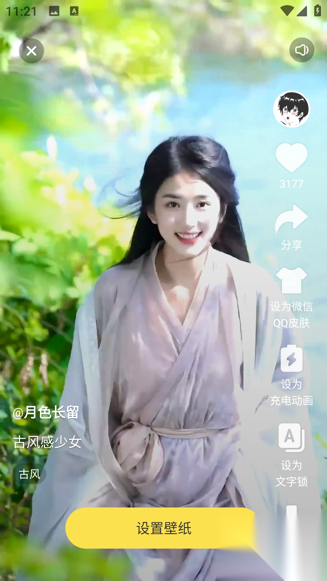 2、浏览分类内容或者搜索你喜欢的动态壁纸,打开对应的壁纸后,点击【设置壁纸】按钮即可。