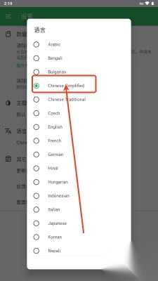 3. 在功能列表里点【语言】,打开对应的语言列表;