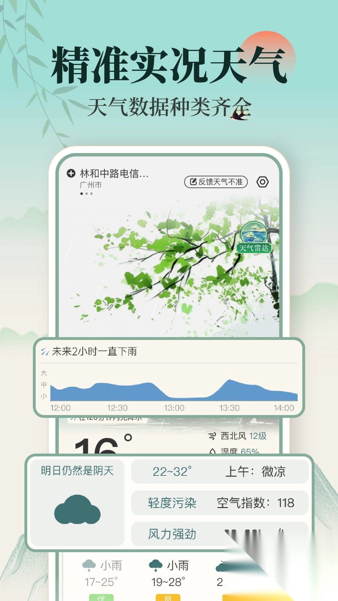1、突破传统预报的限制,精准把握天气变化的走向,让天气动态尽在你的掌控之中,从容面对生活里的每一个瞬间。