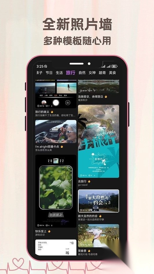 2、提供节日、旅行等各类主题的创意模板,赋予内容主题性与独特意义。
