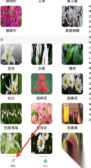 1、用户可直接进入首页,在首页底部找到“养花”板块。