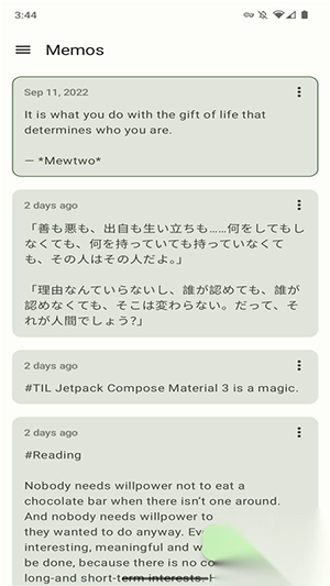 2. 数据同步:能和个人memos服务器顺畅同步内容;