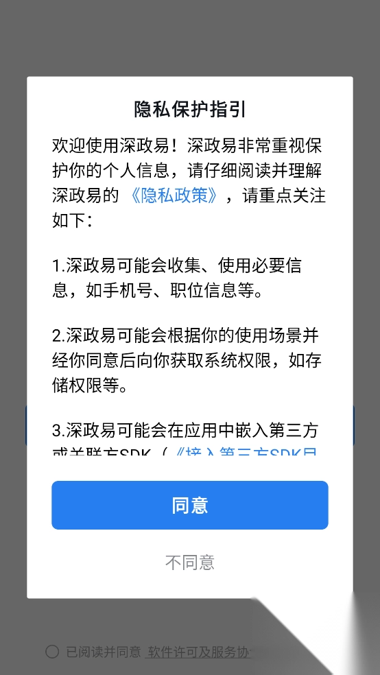 1、可直接使用最新版本的软件,进入时需先同意隐私权限。