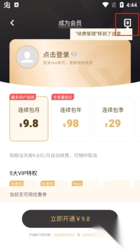 3. 在页面右上角的【续费管理】中完成取消操作。