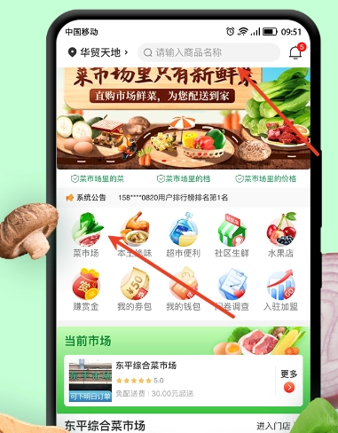 2、用户也可以点击下方提供的菜市场入口,从中挑选所需商品。