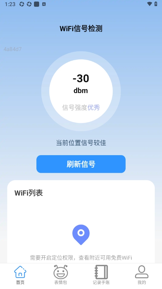 1、首页的核心功能是检测当前使用的WiFi信号实际状况,此外,开启定位功能后,系统还会帮你筛选出附近的免费WiFi,助你节省流量;