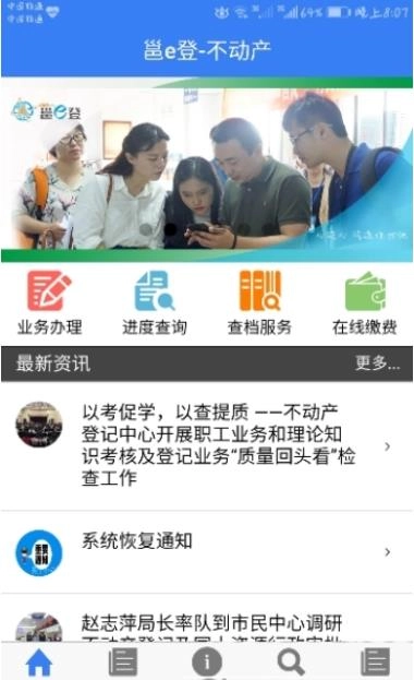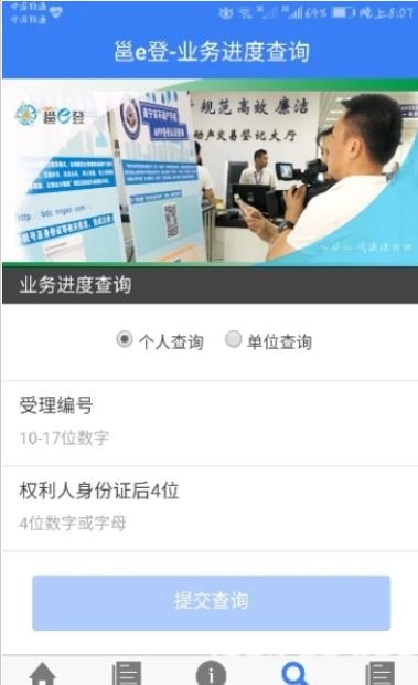 邕e登是南宁市不动产登记服务平台的手机客户端,借助它,你能不受时间地点限制,快速查询档案信息,无需到现场取号、排队即可享受查询服务。
