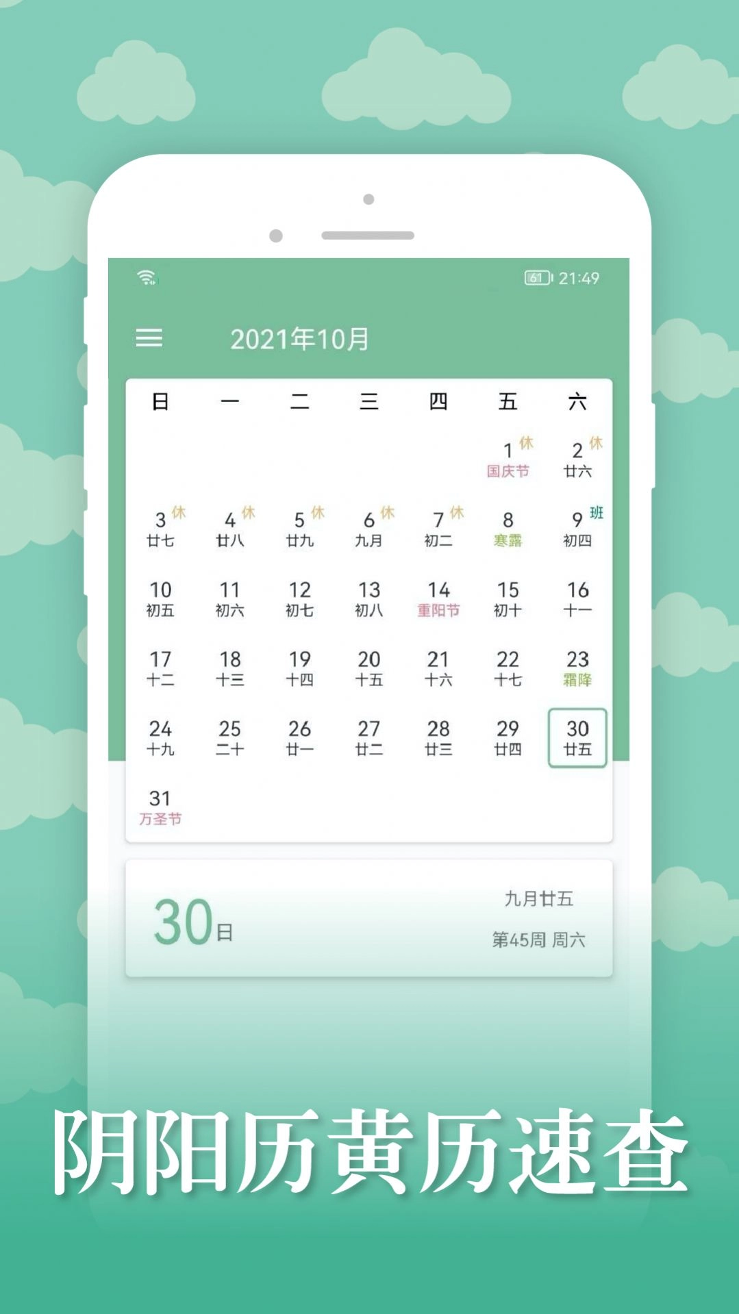 2、为用户提供了大量的节日历史和信息,还有很多可以免费为用户提供的功能,让用户可以有很好的日历查询体验。
