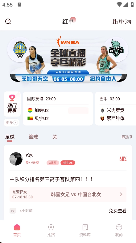 2. 在主页面即可看到各类体育比赛,可以按需选择。