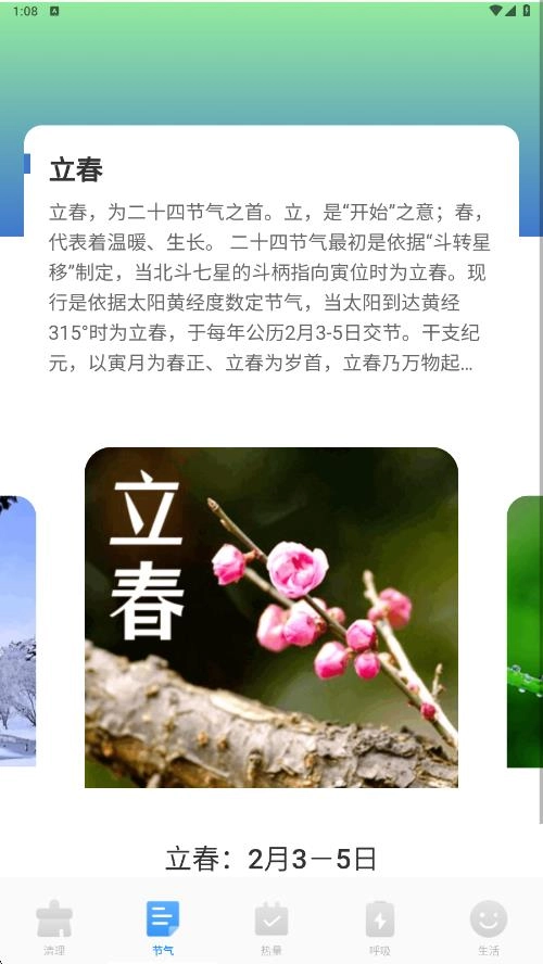 3、还带来了节气和热量查询等信息,一键搜索更全面。