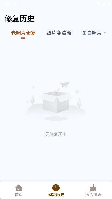 首页配备了老照片修复、照片清晰度提升、黑白照片上色等实用功能。