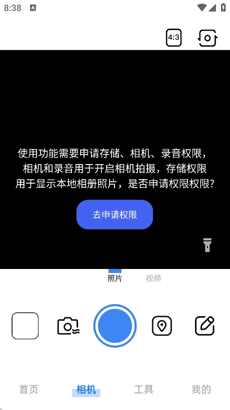 2、你可以在相机里申请权限,之后就能进行一键在线拍摄之类功能的操作了。