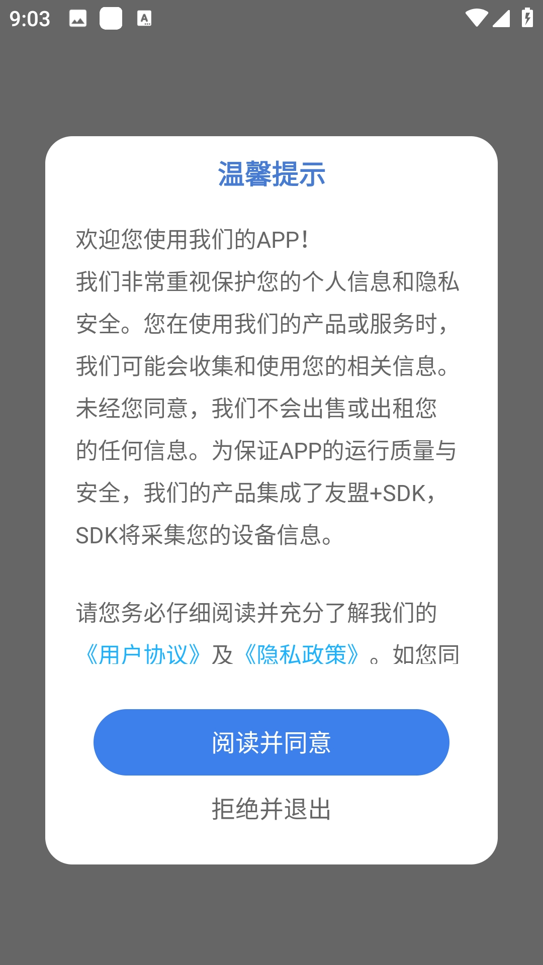1、安装该软件并将其打开,点击“阅读并同意”选项,随后进入软件的主界面;