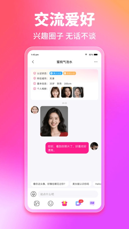 2、借助精准的匹配算法与个性化推荐机制,交友效率得到显著提升,助力用户更迅速地寻觅到心仪的对象。